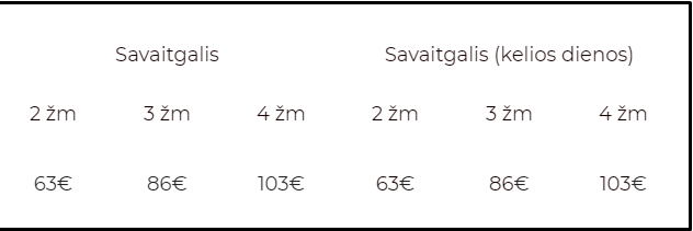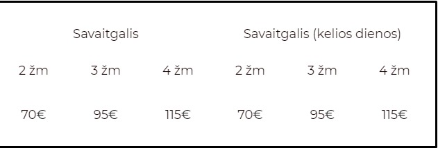 Dėl laisvų datų bei rezervacijos skambinkite telefonu: +37061307002 arba rašykite el. paštu: trakuterasa@gmail.com